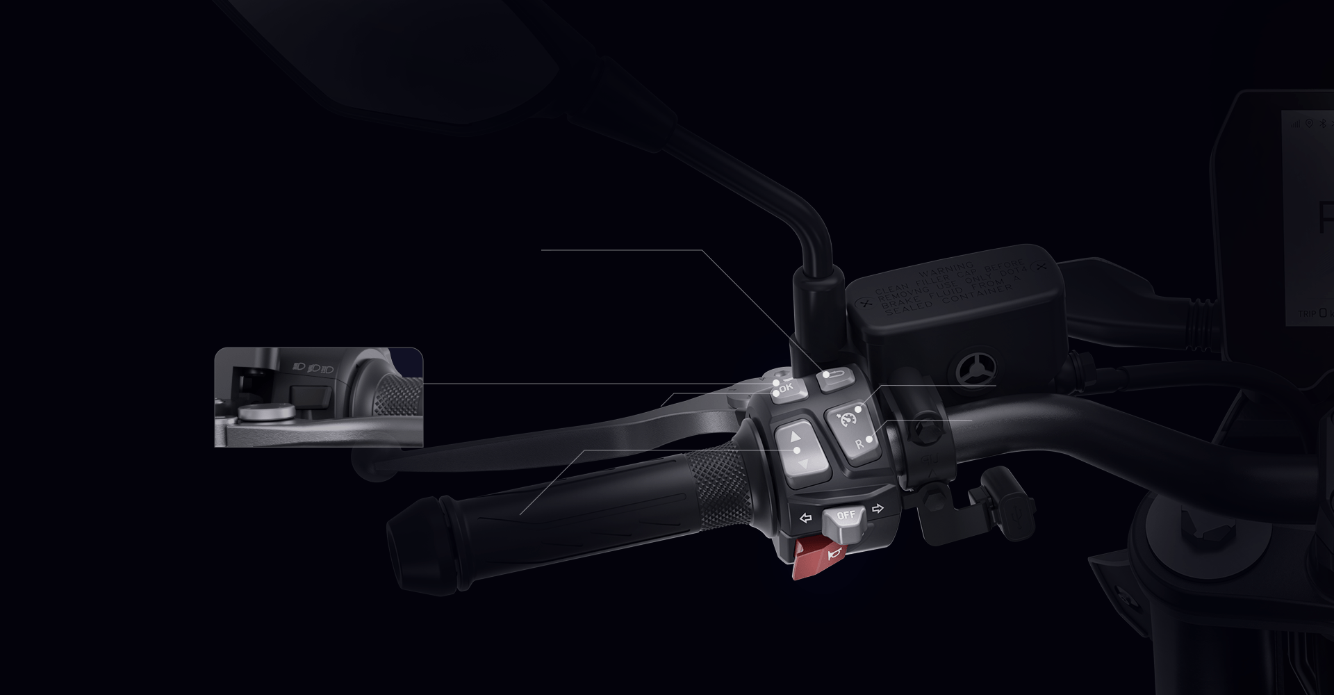 Stay informed on the go with the 7-inch TFT smart dashboard, showing real-time updates on battery, tire pressure and temperature, and any vehicle issues.