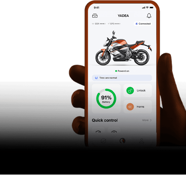 Dive into a new era of motorcycle design powered by KISKA. Our forward-leaning, sleek style screams speed and athleticism, while visible motor cables boldly highlight the vehicle's electric essence. With YADEA, it's not just a ride—it's an experience of power and unparalleled style on every road.